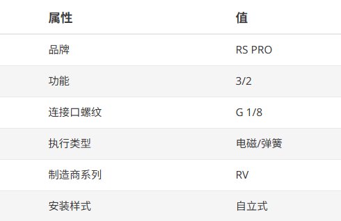 RS PRO 3/2 气动电磁阀 - 电磁阀/弹簧 G 1/8 RV 系列
